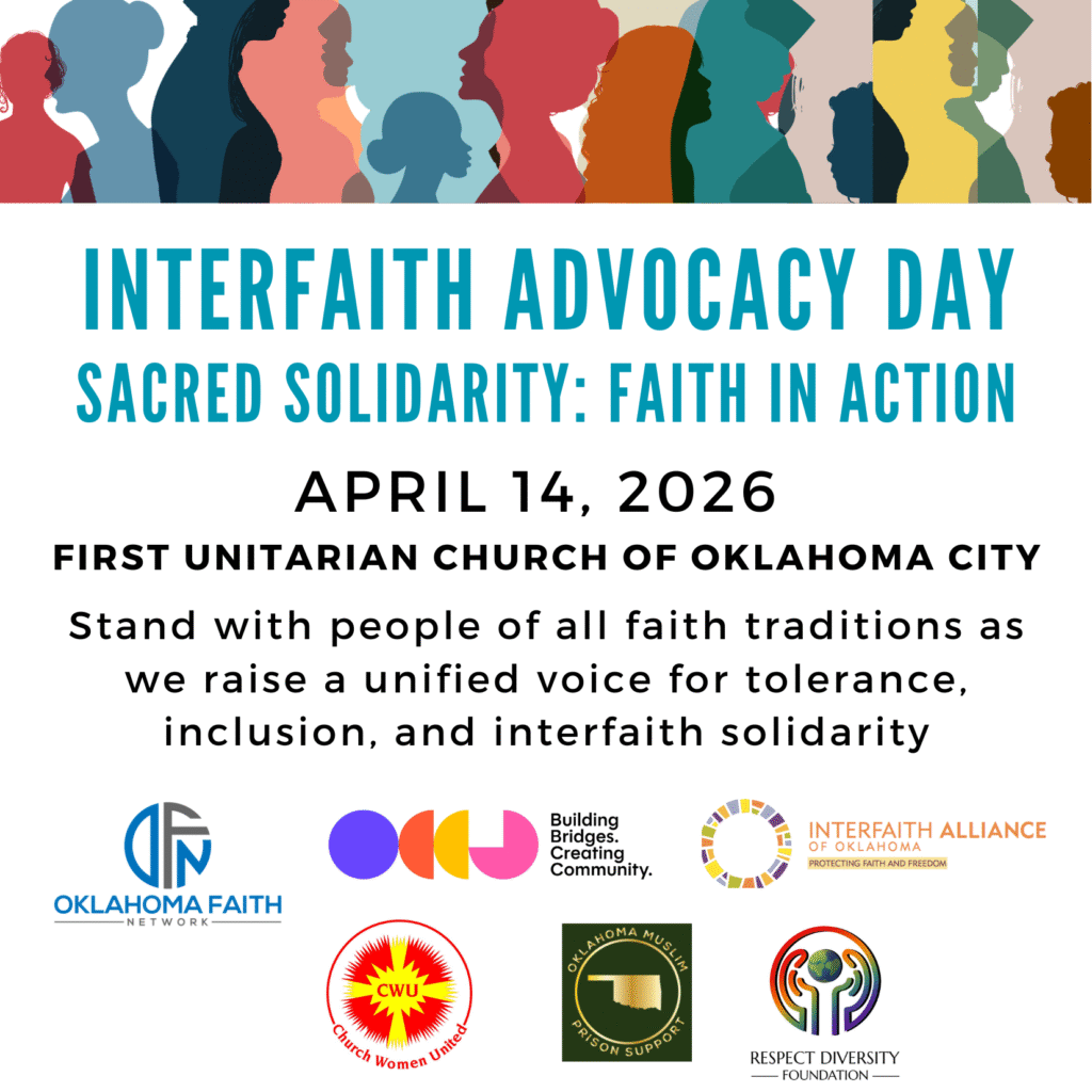 Interfaith Advocacy Day is all about uniting folks from different faiths to stand up for tolerance, justice, and inclusion of diverse voices. This show of solidarity makes visible the beautiful range of perspectives, experiences, traditions, and beliefs across the state. Don’t miss out on this opportunity to meet new people and advocate for a more just Oklahoma.